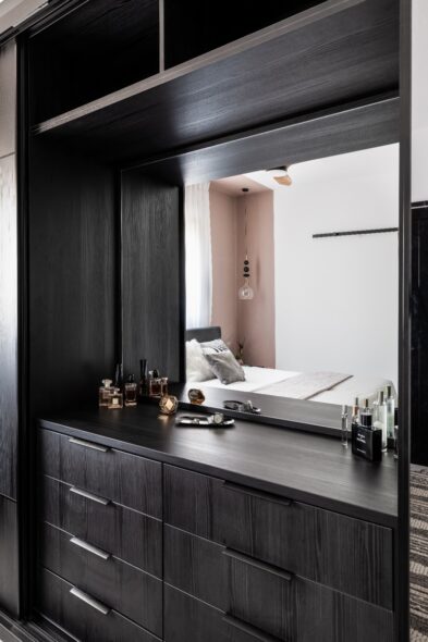 כמו בפרויקטים רבים גם כאן ביצעתי תכנון פנים מוקפד הכולל תכנון נגרות אישית בכל רחבי הבית החל מהמטבח ועד לפתרונות אחסון בחללים השונים, תוך דגש על שיק וסטייל.