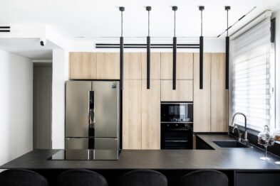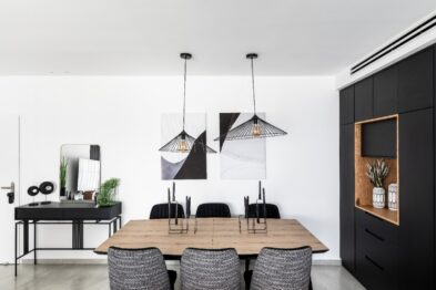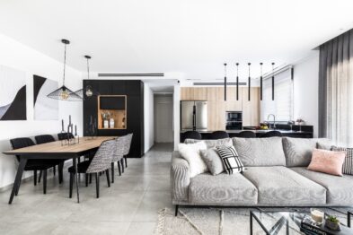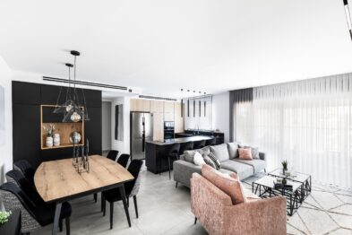 בני הזוג התחברו לעיצוב מודרני, מינימליסטי בגווני שחור ובשילוב עץ ועם זאת הם ציינו בפניי שחשוב להם שהבית ישדר חמימות, נוחות ופינוק.