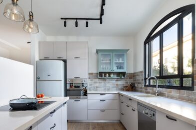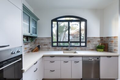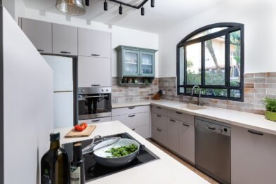 ריהוט: רהיטי גן השלושה | ריצופים חיפויים וכלים סניטריים: גוטשטיין קרמיקה | תאורה ואקססוריז: כנעני תאורה Lighting | צילום: אבי קבלו, צילום אדריכלות ועיצוב פנים |מטבחי נופרידור – NofriDoor Kitchens |אבי דיזיין – Avi Design – פרקטים.