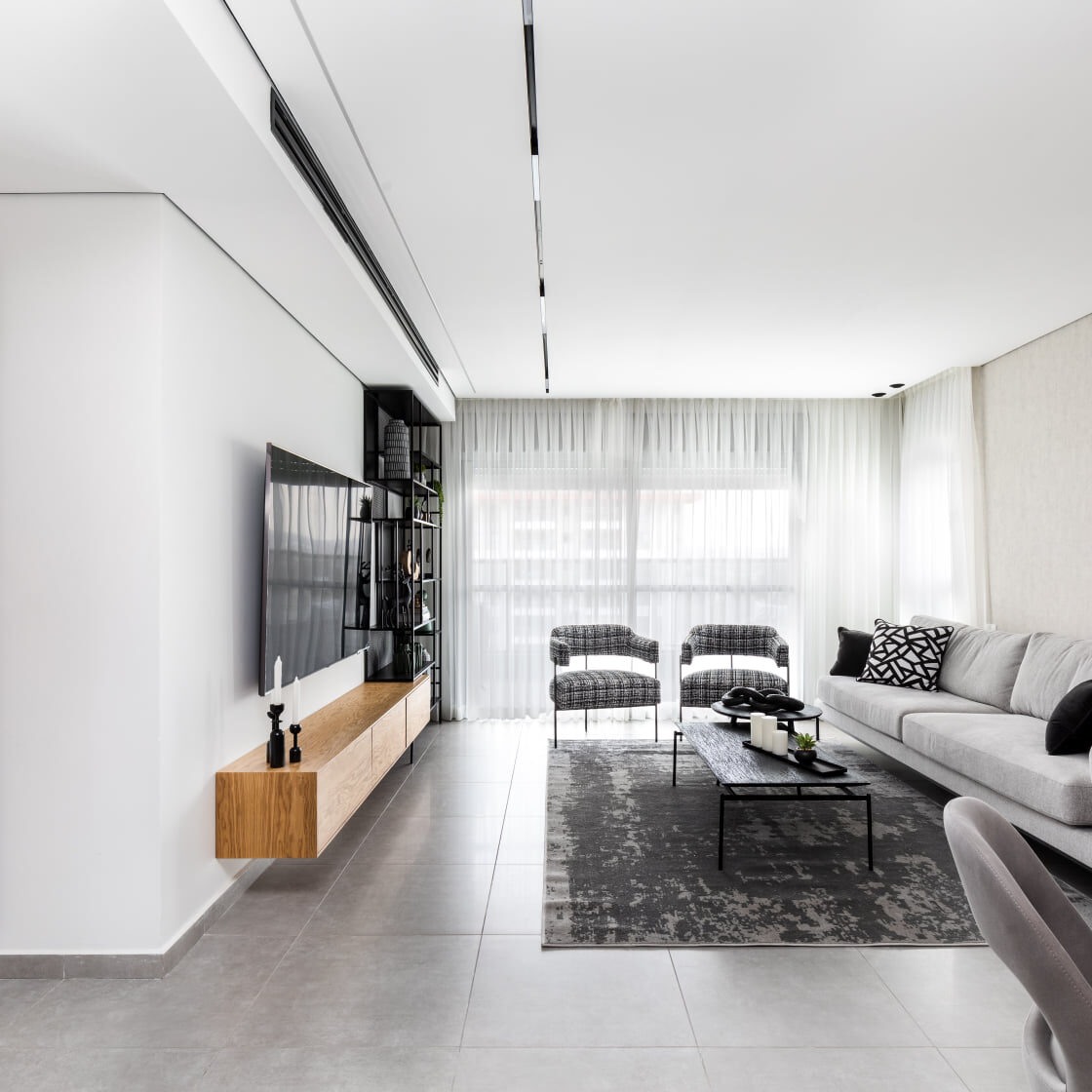 בתכנון הדירה היה מקום מעבר לסטיילינג אז כהרגלי שברתי קירות והפכתי את הבית לחלל מזמין והכי חשוב עם כל רשימת החלומות של דורון! התחלתי כמובן בהעמדה הכוללת הדמיה, חוץ ופנים , נבחרה הסקיצה שכללה תכנית מטבח חדשה לצרכים של דורון ויחידת טלוויזיה המשלבת את חיבתו של דורון לוויסקי. וכך יצאנו לדרך: שברנו את הישן , ופנינו מקום לחדש. המסע שלנו כלל ימי קניות כיפיים במיוחד בסוף התהליך אני שמחה לבשר שדורון מבשל, מארח והכי חשוב מאושר.